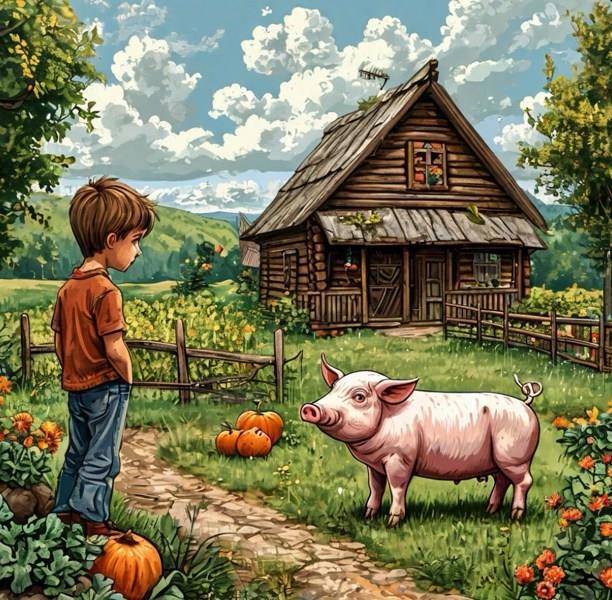 Они смотрели на меня непонимающе, сонно, а я не сводил глаз с последнего загона. Иду, по пути стеснительно здороваюсь с коровами, с лошадью и поросятами, последние даже мне хрюкнули в ответ. Иду и вот он — последний загон. Нерешительно заглядываю туда — никого! И вчерашнего угощения тоже нет! Стою у загона, вспоминаю, что бабушка говорила вчера:
