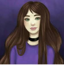 Внешность: коричневые волосы, зелёные глаза,чокер, фиолетовая кофта, чёрные брюки и куртка