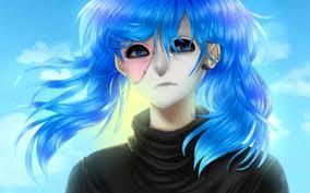 Внешность: синие волосы и глаза,красные брюки,чёрный свитер, синие кросовки,протез на лице.