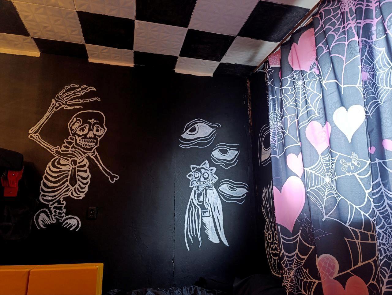 Хоум-граффити представляет собой уникальное явление, объединяющее элементы уличного искусства и интерьерного дизайна. В отличие от традиционного граффити, которое создаётся на открытых пространствах и подвержено стиранию или закрашиванию, хоум-граффити создаётся в более контролируемой среде и может быть адаптировано под любой стиль интерьера. Анжелато, вдохновившись персонажами комикса Маринетт Мортем, создал впечатляющий пример хоум-граффити в своей квартире, используя маркеры и краски для передачи характеров и настроения героев комикса. Комикс Маринетт Мортем «Асоциальное сообщество» стал источником вдохновения для Анжелато благодаря динамичной энергетике персонажей и их уникальному визуальному стилю. Герои комикса, такие как солнышко Хару-Хару и Безглазый олень Джерри, множество огромных глаз, ананас Татьяна, и главарь банды разбойников Скелет - стали символами самовыражения и свободы. Анжелато решил перенести этих персонажей на стены своей квартиры, чтобы создать уникальное арт-пространство, которое отражает его личные интересы и вдохновение.