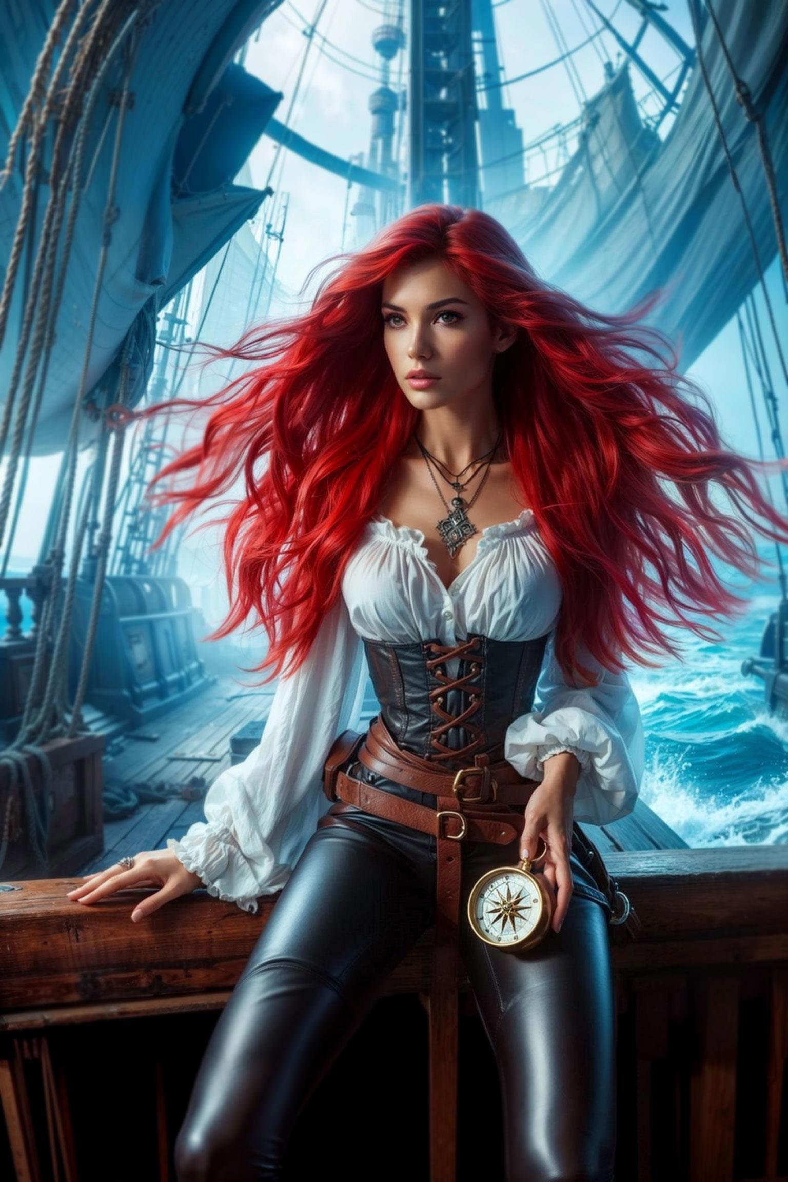 В этот момент снова раздаются шаги за дверью, и в каюту без стука входят двое. Точнее, входит один темноволосый мужчина, а девушка с огненными волосами буквально влетает.