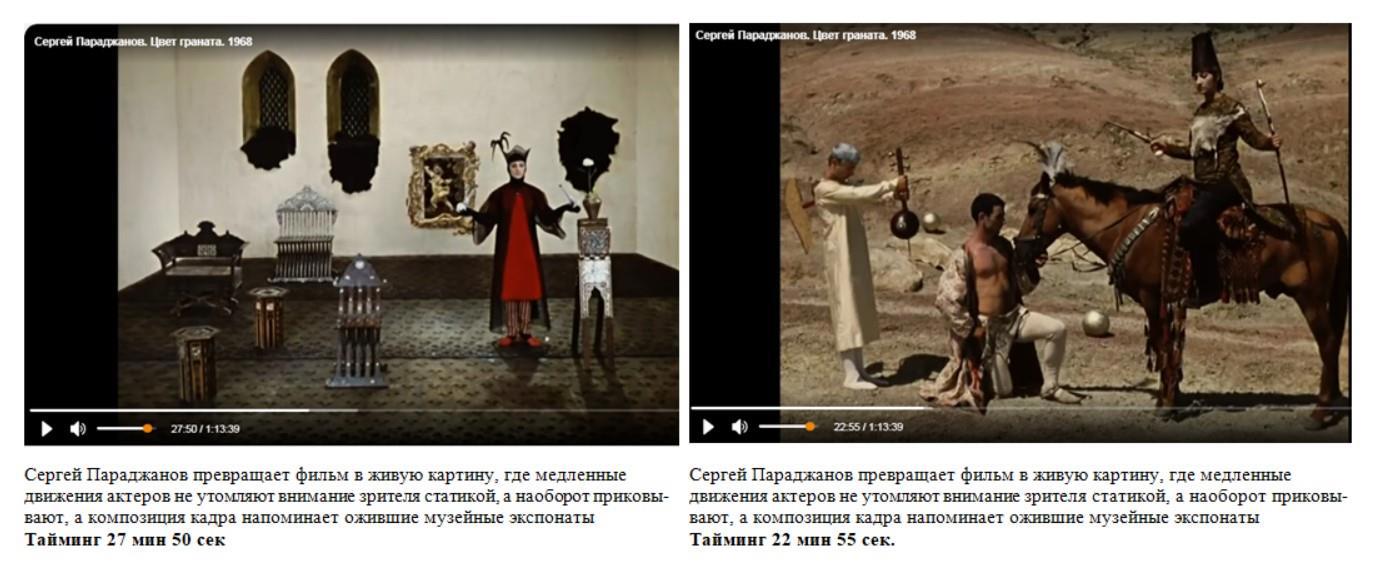 Для меня загадка, почему эти длительные по хронометражу кадры не вызывают ни утомления, ни раздражения, хотя в фильме вообще нет ни привычного нашим современникам последовательного развития сюжета, ни спецэффектов. Фильм «Цвет граната» близок современности тем, что показывает, как творчество может быть важным для людей в любых условиях.