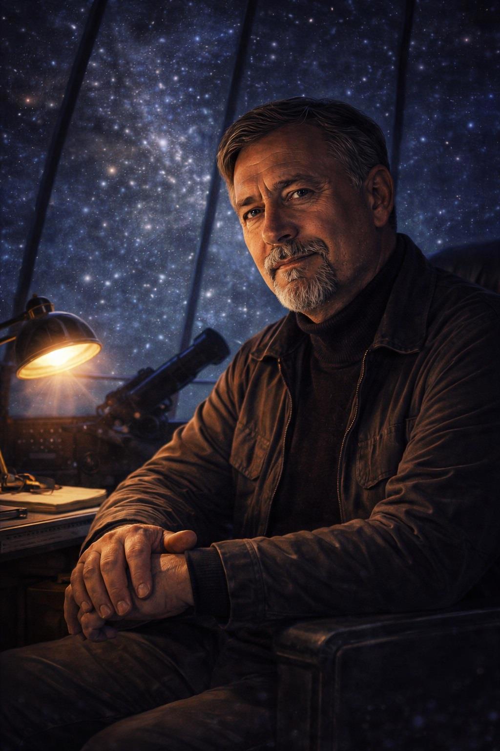 Человек, который так и не стал космонавтом, но всю жизнь прожил среди звезд. В шестьдесят два он умеет смотреть на Вселенную с иронией и на людей - с усталой, но теплой усмешкой. Скептик по привычке, мечтатель по сути, Жебровский одинаково легко цитирует научные теории и отпускает колкие шутки, за которыми прячется старая детская тоска по новым мирам.