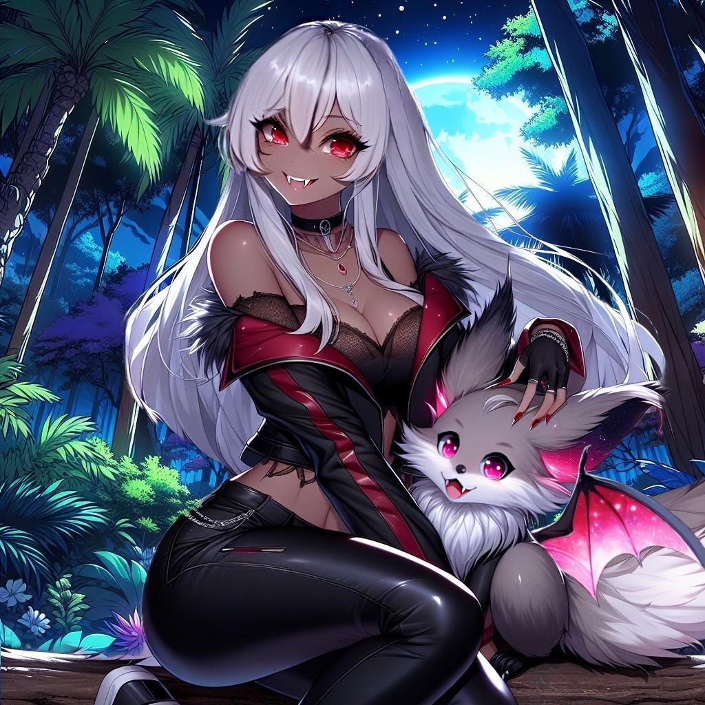 Что нужно, чтобы растопить сердце злобной вампирши? Правильно! Кавайный пушистый зверек. Все же она баба, пусть и клыкастая.