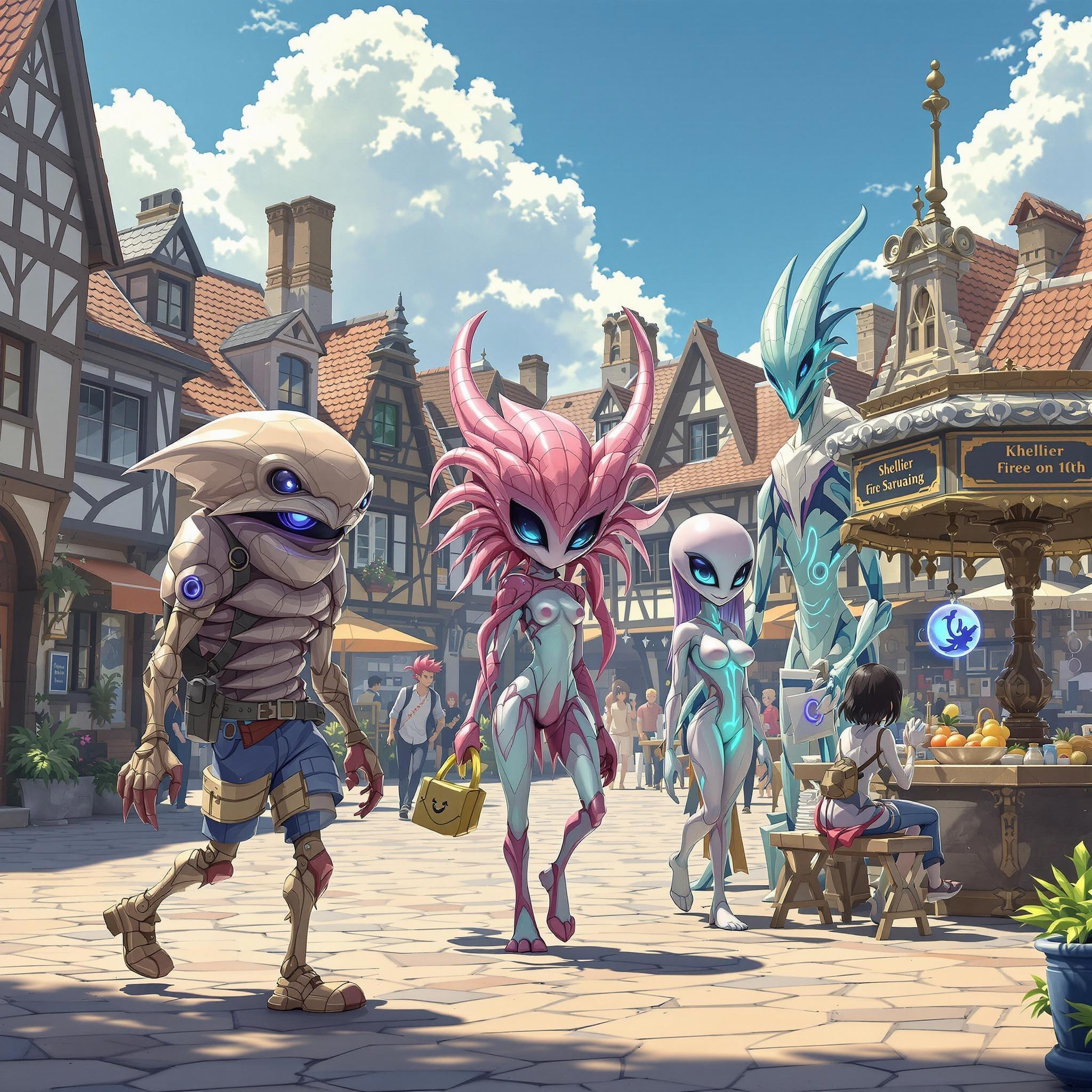 Там, рядом с грузовым Цвергом, похожим на гигантского жука-носорога, копошилась долговязая фигура. Это был арктурианец — существо, напоминающее богомола из полированного обсидиана. Четырьмя тонкими, многосуставчатыми руками он выгружал из чрева Цверга коробки с какой-то булькающей живностью.