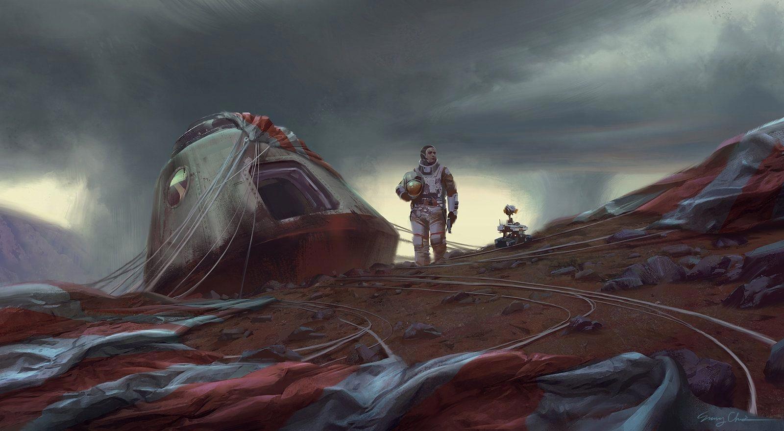 Выбравшись из спасательной капсулы астронавт Корри Кроуфорд оглянулся изучив взглядом безжизненную равнину красно-бурого цвета под клубящимися серыми облаками и с раздражением пнул ботинком спасательный парашют распростёршийся по поверхности земли.