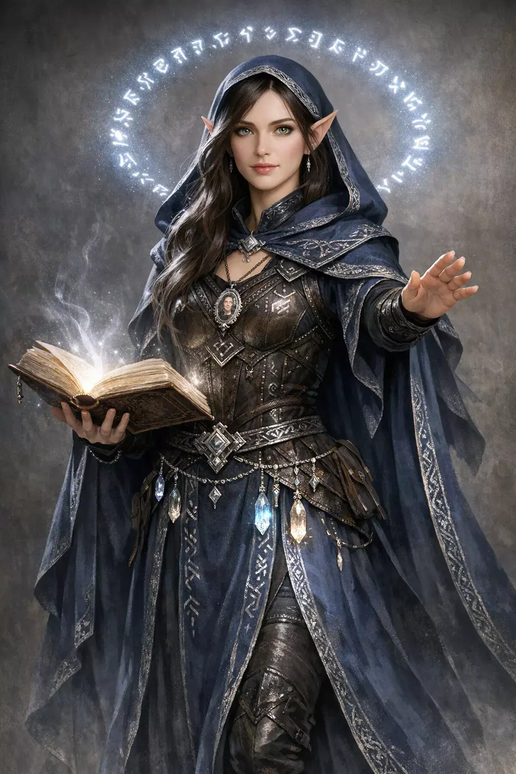 Лицо было... красивым. Неземным. Острые скулы, тонкие губы, глаза — серые, почти серебряные, без зрачков, светящиеся в полумраке. Волосы — белые, длинные, заплетённые в сложную косу. Возраст определить было невозможно: она могла быть и двадцати, и сорока лет.