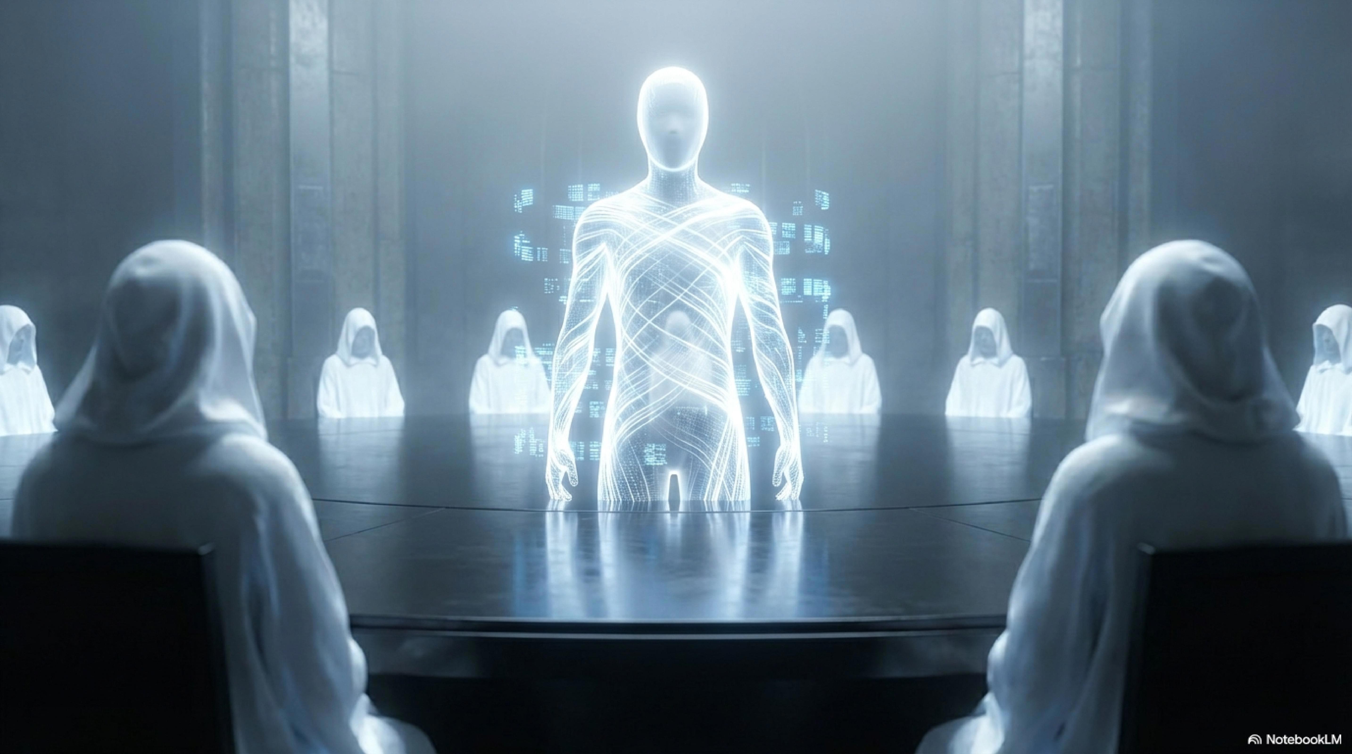 Синхронно руки всех присутствующих поднялись в жесте приветствия и также быстро опустились. А в центре стола вдруг появилась новая фигура, гуманоидная, лишенная каких-либо отличительных черт.