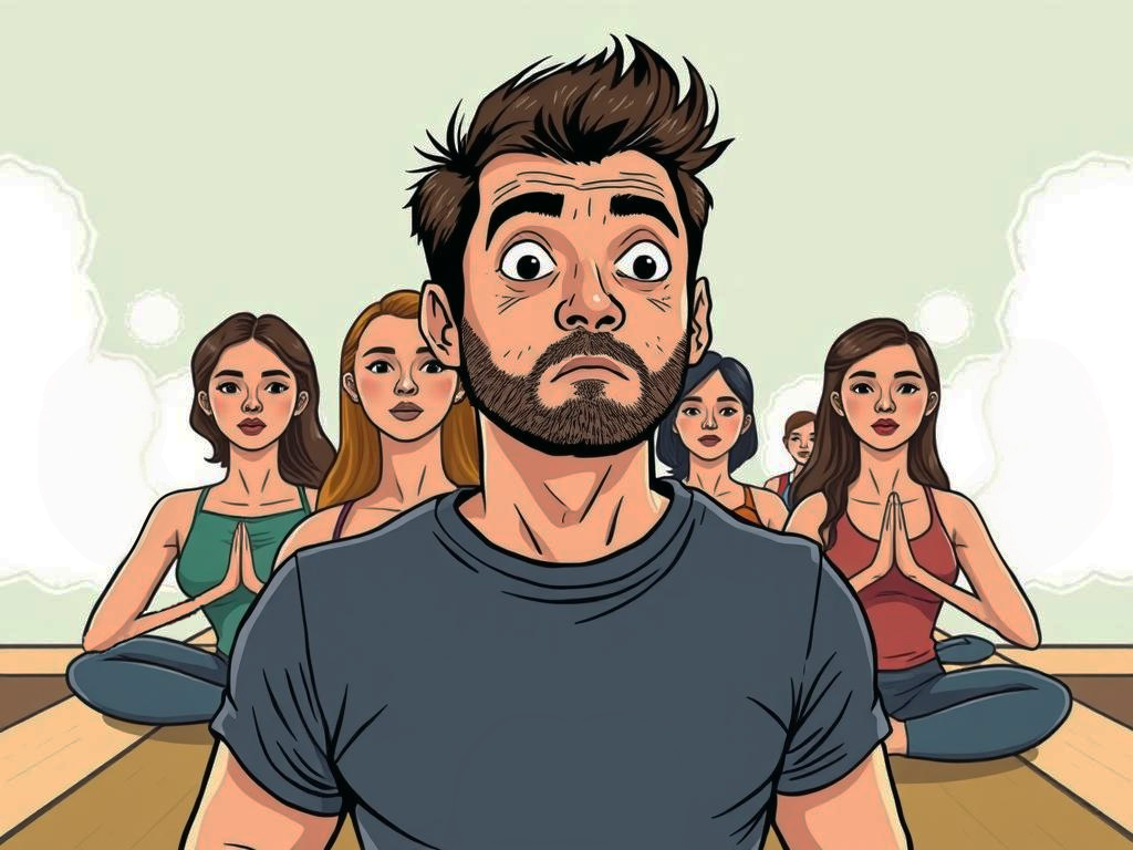 Едва оказался внутри, обалдел – полный зал женщин! Развернулся, но жена уже перекрыла путь к отступлению. Вздохнул и занял местечко поближе к выходу, чтобы сбежать, если что. А жена зачем-то положила рядом со мной здоровый деревянный брусок и ремень. Зачем это?