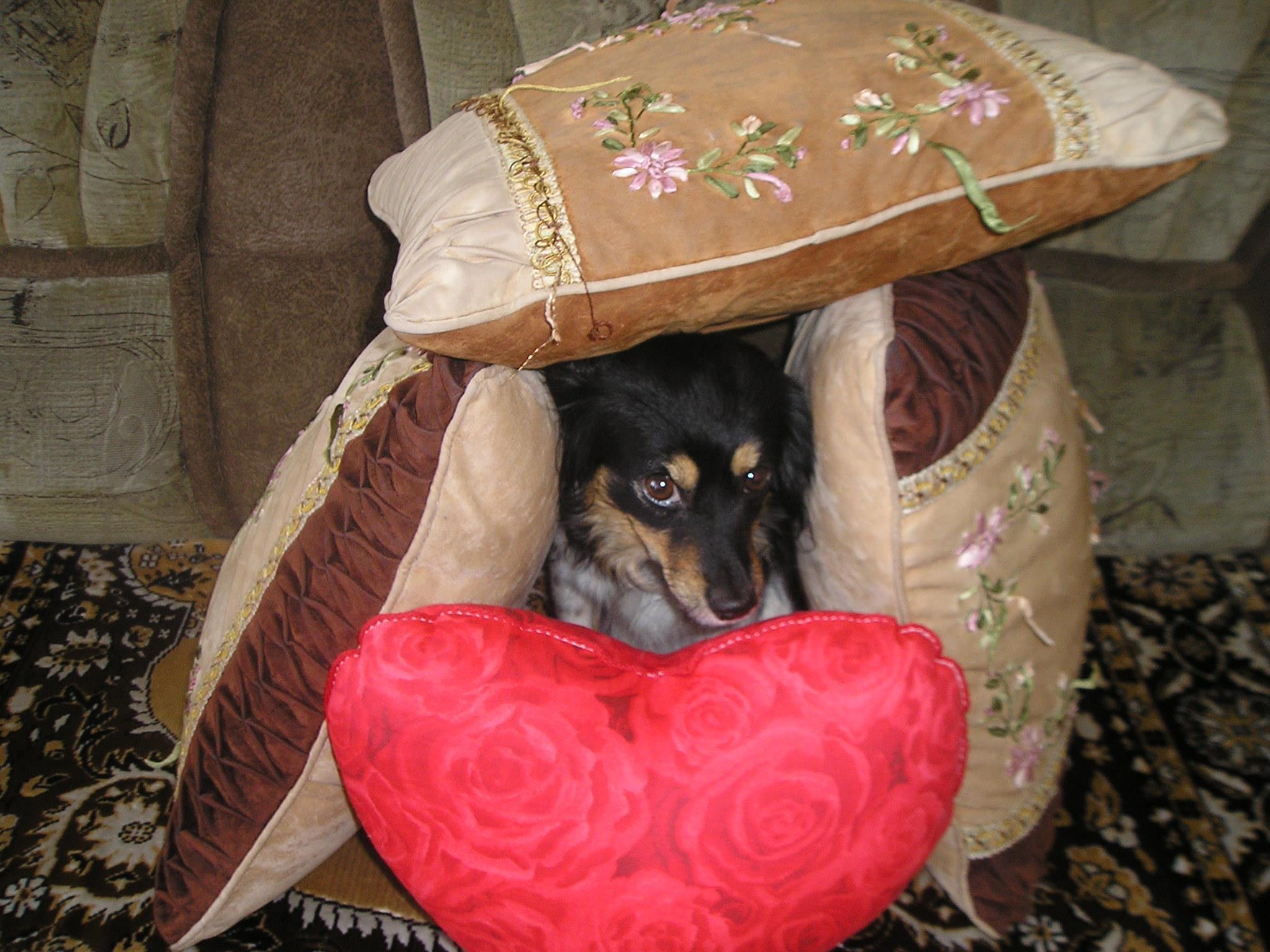 А у Удачи вновь проявились признаки беременности. В последнее время с ней гуляла не только ее хозяйка, но и мы с младшей. И все в один голос говорили, что она ни с кем не общалась и никуда не убегала! Но беременность была на лицо! Ее поведение стало очень беспокойным. Она упорно собирала маленькие предметы и несла в укромный уголок. Могла стащить с сумочек девчат маленькие игрушки, которые модно было вешать на шнурочках или цепочках. Ложилась на них в уголке и тихо рычала, словно охраняла щенков. При детальном осмотре у нее было явное набухание сосков.