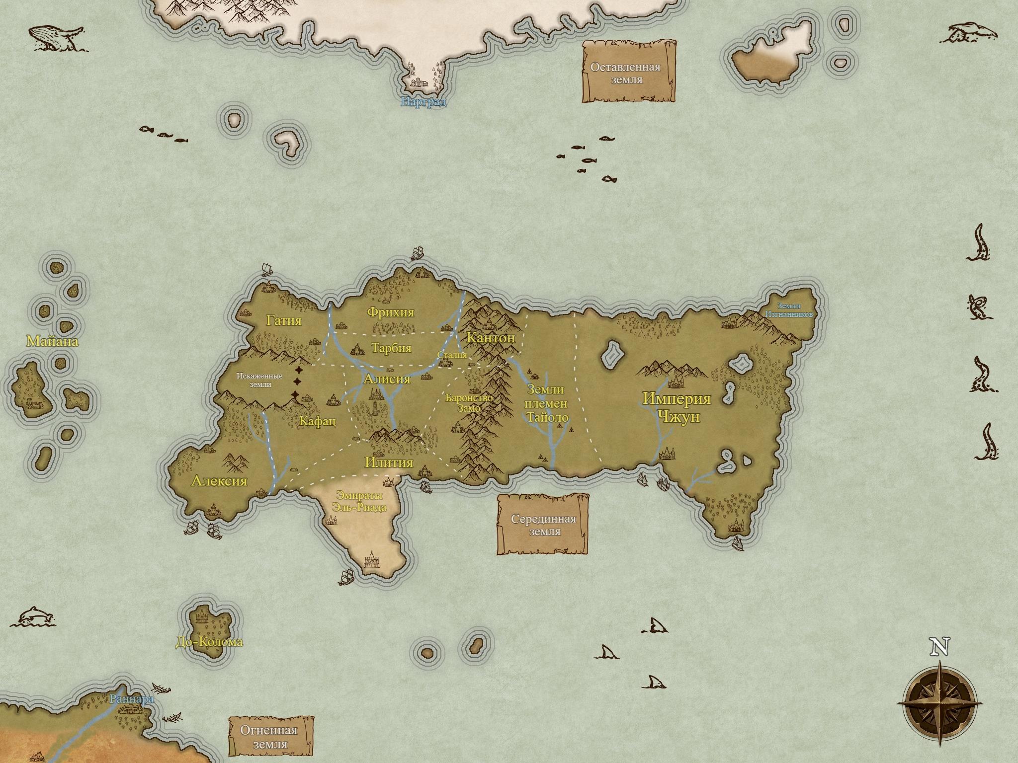 Срединная земля – центральный континент, самый крупный из трех. Заселен вторым по счету и сейчас является центром цивилизованного мира.