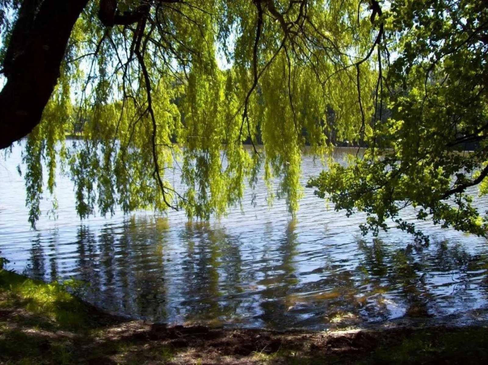Ива стара, её ствол в охват моих рук, ветви обильны и покрыты длинными листиками, зелёными с белым налётом. Они шумят от небольшого ветра, некоторые ветви спускаются в воду самыми кончиками листьев, они двигаются в такт движения ветра. А мне кажется, словно зрелая женщина касается глади озёрной своими точёными пальцами, создавая мелкие, но такие почему-то переливающиеся волны, которые почему-то медленны и быстры в своём появлении и скоротечны в своём существовании.