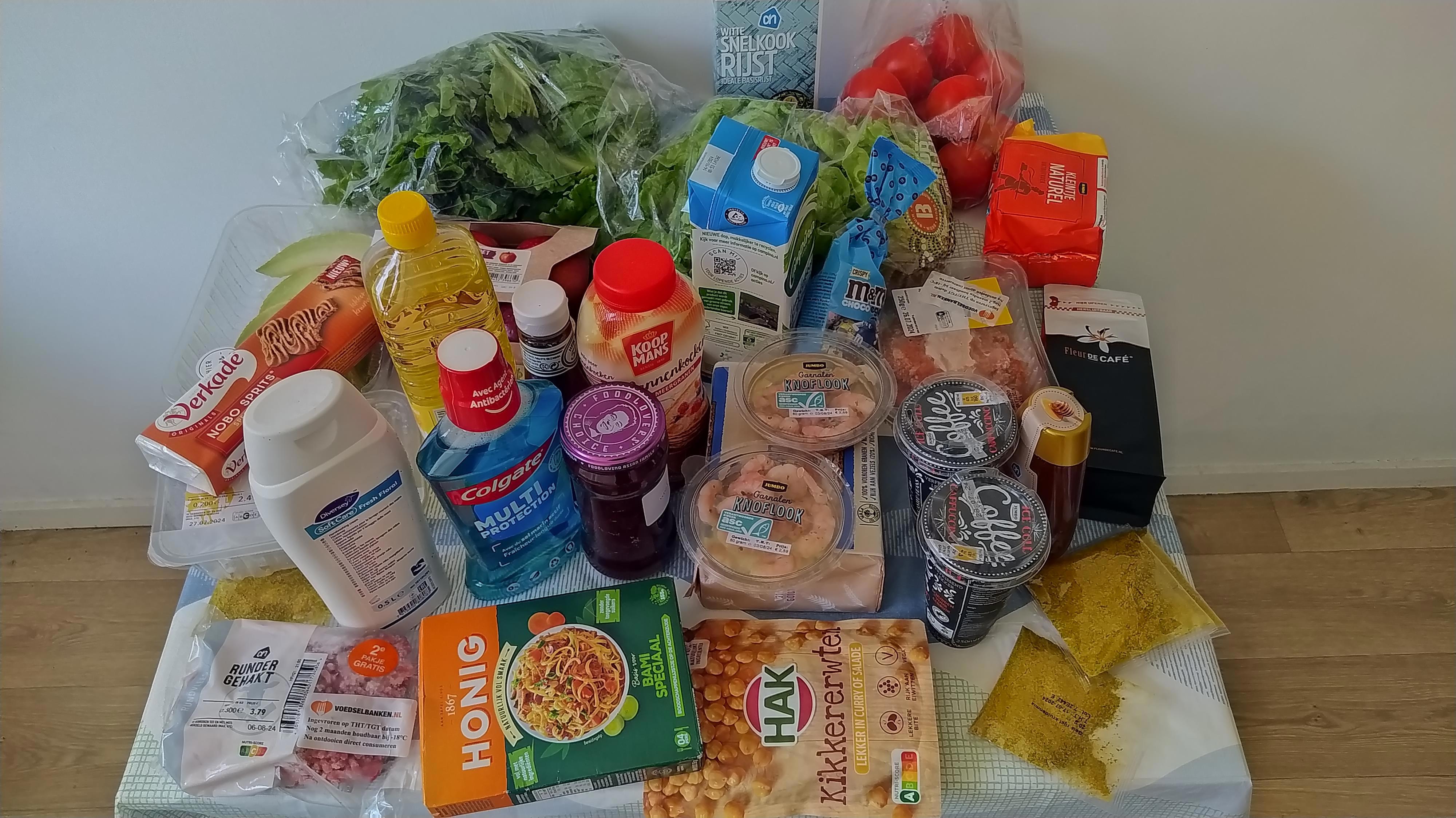 Сначала тебе выдают фиксированный продуктовый набор. Это то, что каждый посетитель получает обязательно. Обычно это мясо, морская рыба или морепродукты (креветки, мидии), рис, макароны, масла подсолнечное или сливочное, консервы, замороженные полуфабрикаты, кофе, чай, наборы для выпечки, готовое печенье, чипсы, сладости или даже мёд.