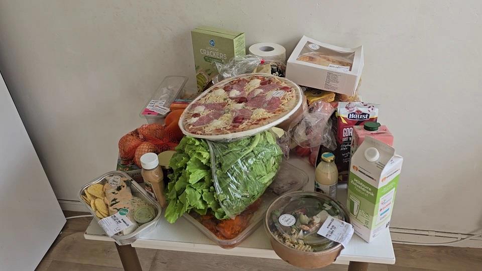 На фотографиях типичный набор еды из фудбанка