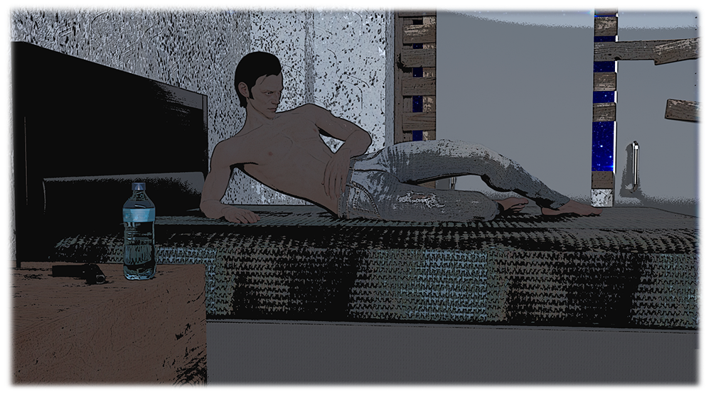 Встав с кровати, парень огляделся – угрозы никакой не было. Поэтому он стал приводить себя в порядок. Пошарив по шкафам и ящикам, нашёл пыльные, но сухие штаны. В тумбочках он обнаружил чистую футболку, распустил её на бинты и перевязал руку, обтёрся остатками воды и, одевшись, начал поиски вооружения.