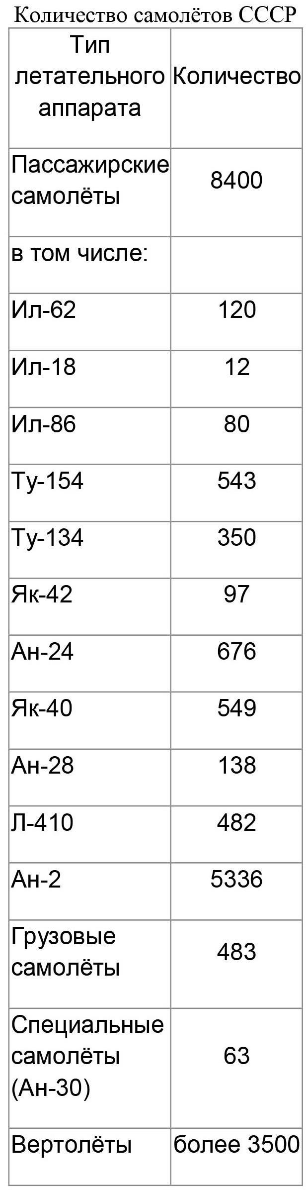 Количество самолётов гражданской авиации в СССР к концу 1991 года: