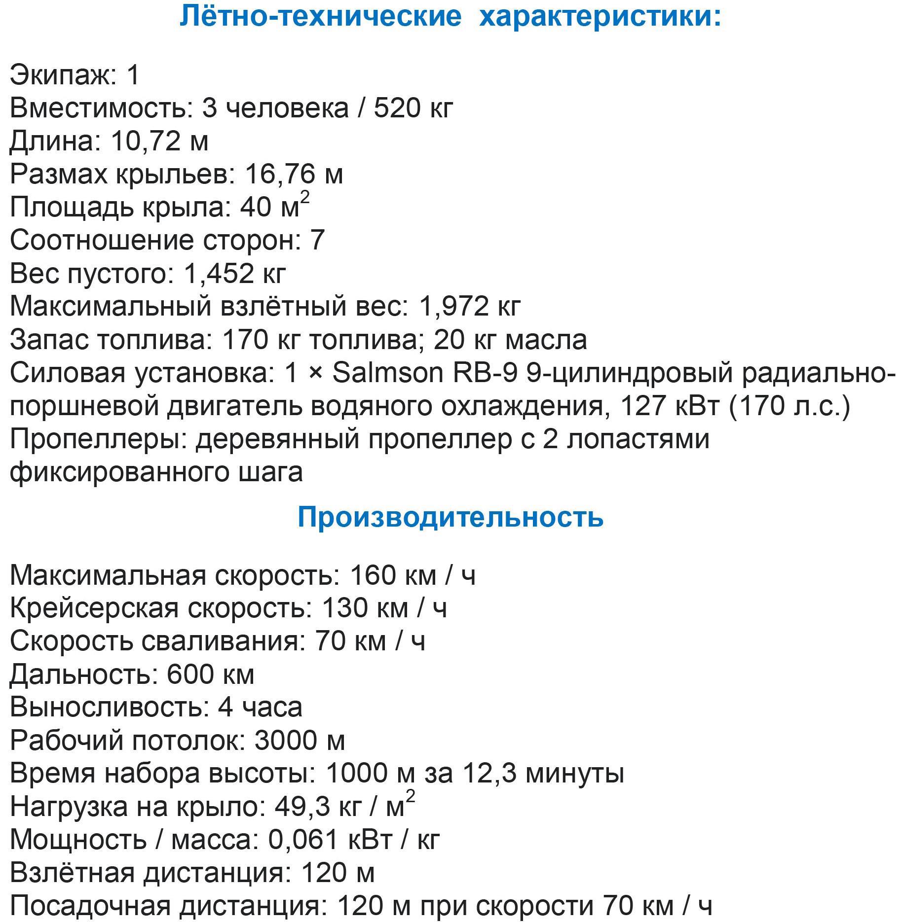 Крыло: четыре одинаковые по длине и площади деревянные несущие поверхности составляют однопролётную коробку крыльев, расчаленную лентами и И - образными стойками. Коробке крыльев придан поперечный угол 5 градусов. Верхнее крыло вынесено вперёд на 800 мм.