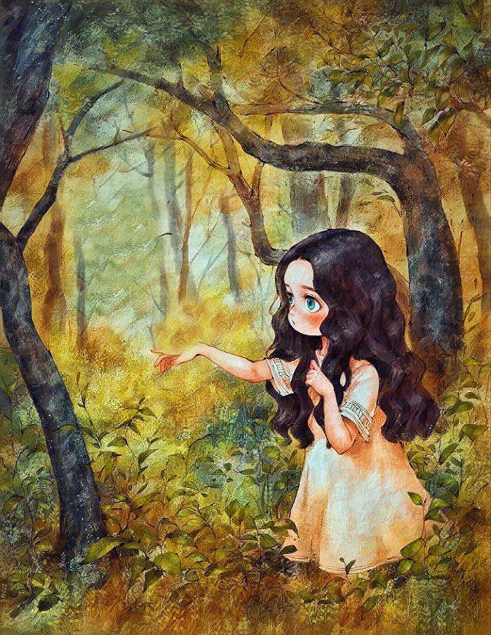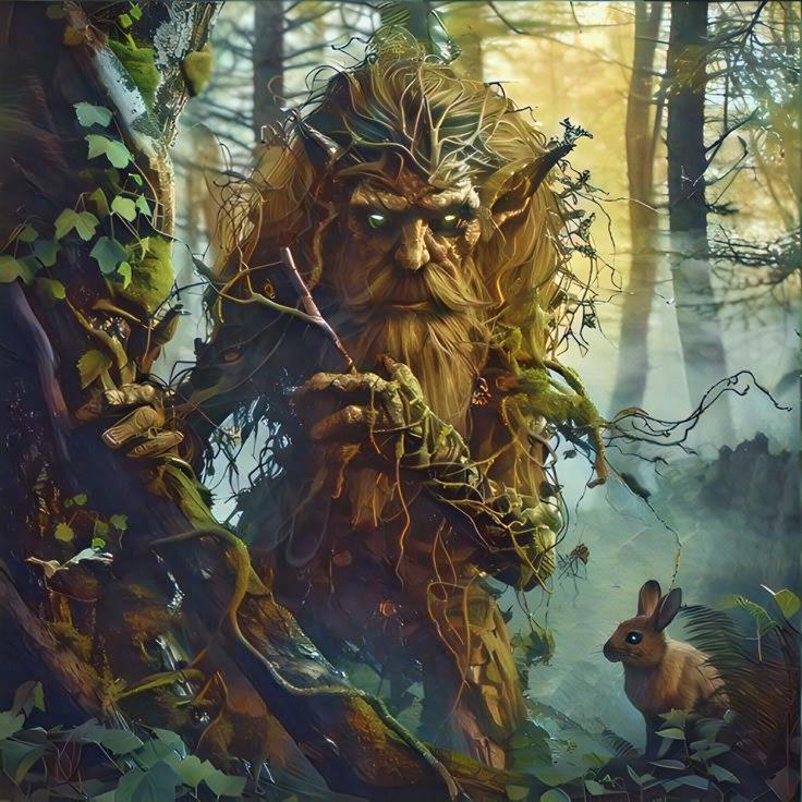 Лесной Дух замер в молчании . Вдруг огни в его глазах перестали бушевать и стали похожи на двух светлячков в спокойной ночи .