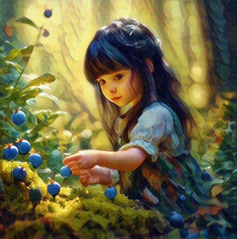 Наконец , вышла Ханнушка на серебристую полянку . Там в середине , на кочке , рос куст , увешанный ягодами , светящимися изнутри нежным голубым светом . И вдруг куст запел . Мелодия была такой чистой , что у девочки навернулись слёзы . Это была песня про первое утро мира , о шепоте трав и звёздном ветерке . Слушая её , она чуть не забыла обо всём . Рука Ханнушки сама потянулась , чтобы сорвать самую красивую ягодку . И она сорвала её .