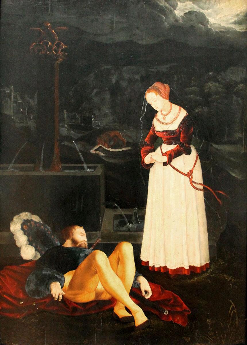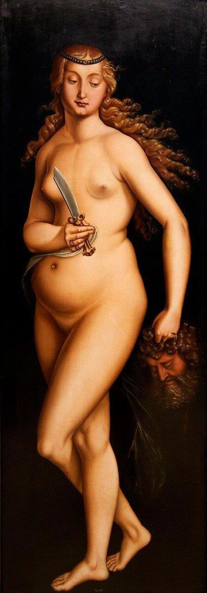 А теперь посмотрите, как Бальдунг изображал одну и ту же модель. Да, сначала была Ева. А вот потом — Венера с Амуром. А затем Юдифь с головой Олоферна. И все одна модель. И, похоже, Мадонну с младенцем он тоже писал с той же модели.