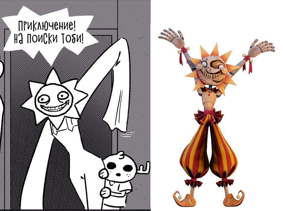 Прототипом персонажа Хару-Хару из комискса Асоциальное Сообщество современной художницы 21 века Маринетт Мортем является Daycare Attendant (чо переводится как Воспитатель), также известный как Sun (что переводится на русский язык как солнце), Moon (это по русски Луна), или же Moondrop (тут накак не перевести, кроме как Лундроп, или Лунный ронятель, Лунный урон), а так же Eclipse (это красивое слово - Затмение). Все это вместе - это аниматроник-антагонист в игре Five Nights at Freddy s Security Breach (что гугл переводчик перевел как Пять ночей с нарушением безопасности Фредди). Конечно же есть русифицированное название этой игры, кто знает как оно переводится и под каким названием эта игра распространяется в России, пишите в комментарии!