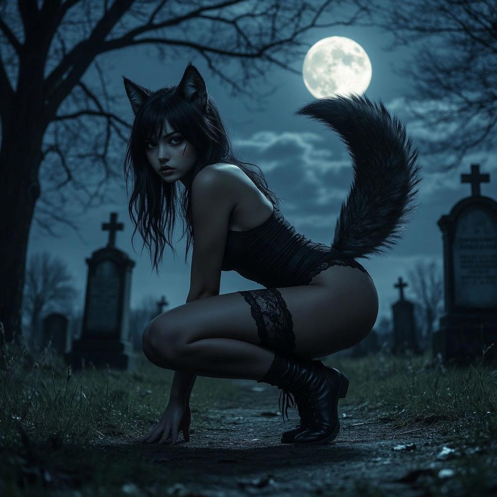 Девушка приподнялась с земли. Ее глаза были направлены на Джонса, это были не человеческие глаза, два светящихся жёлтых огонька. Голова девушки наклонилась в бок. Глаза были не единственной странностью, вместо обычных человеческих ушей на ее голове то и дело шевелились большие собачьи уши, а за спиной болтался шикарный черный хвост, его шерсть уже начала намокать от дождя, но это не уменьшало его объем.