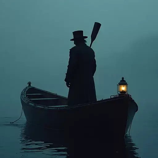 Вечернее, осеннее безмолвие на упомянутой ранее реке нарушил продолговатый кусок древесины, плавно опустившийся вниз. Весло из красного дуба прикоснулось к мутной глади, будто попробовало грязную жидкость на вкус. Затем оно проделало крайне круговое движение и вновь вынырнуло обратно, на воздух. По достаточно узкому каналу медленно плыла лодка, осторожно покачивающаяся то вправо, то влево. Она перемещалась в известном лишь лодочнику направлении в гордом одиночестве, разрушить которое могла лишь заедающая в мыслях песня, относящаяся к разряду популярных, вылетающих из каждого радиофона как нового, так и старого типа. На носу миниатюрного, но не настолько мелкого, как вы подумали, обветшалого судна висел крепко закреплённый фонарь, освещавший путь вперед, однако этой ночью, как и в любую другую ночь, огни горели кругом и везде, так что фонарь тот стоило назвать бесполезным.