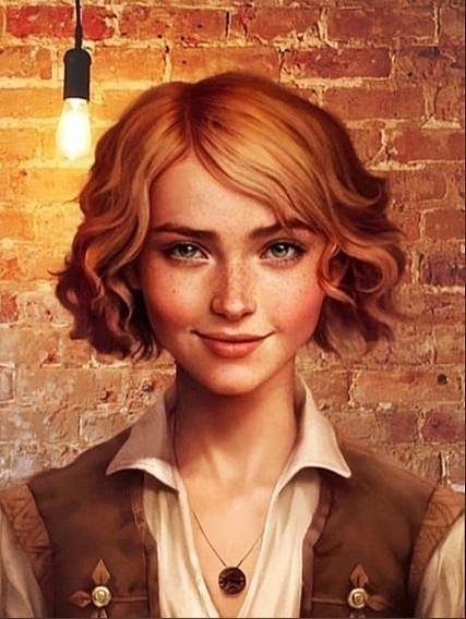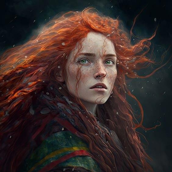 Отличительные черты: длинные рыжие вьющиеся волосы; веснушки по всему лицу и телу; крупные серые глаза; бледная кожа.