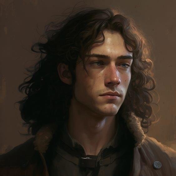 Отличительные черты: брюнет, длинные кудрявые волосы; синие выразительные глаза, уставший тяжелый взгляд; черная кожаная куртка.