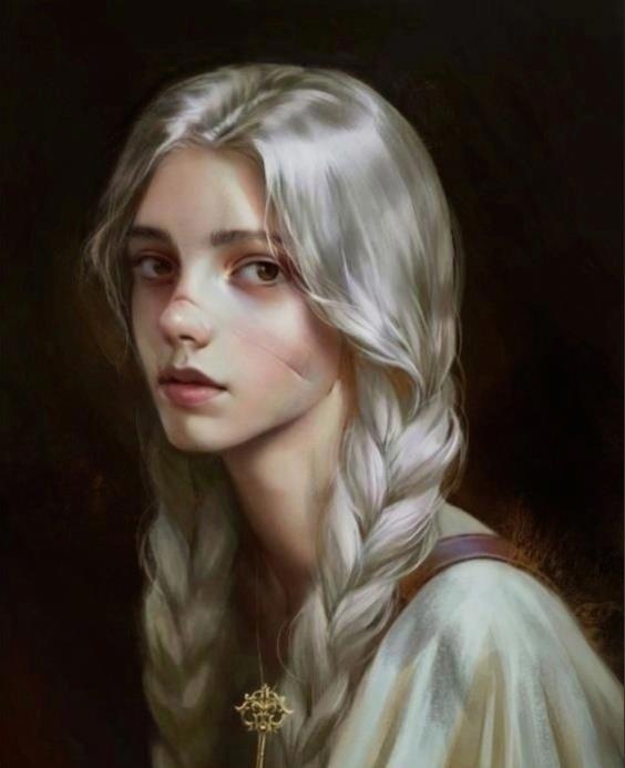 Отличительные черты: белые волосы, заплетенные косу; вытянутое лицо овальное лицо; высокий лоб;