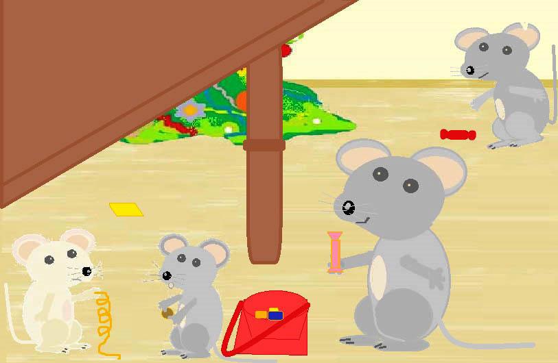 - Вот и урожай – сладкое печенье. А там, у стула лежит конфета. Кто смелый? Может беленькая? – спросила мама-мышь.
