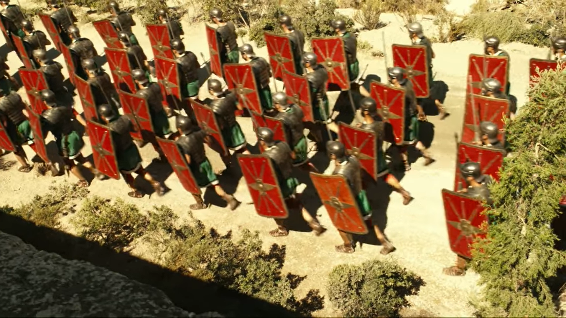 Подгоняемые своими командирами легионеры. Построив своих солдат для атаки, Каюс Бонус выбежав вперёд и оглядев тех, приказал:
