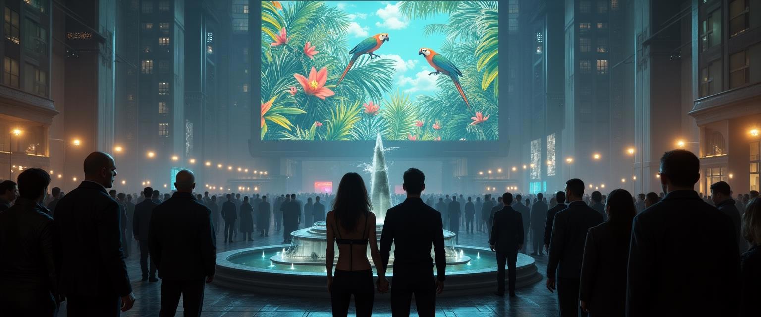 Камеры контроля пространства беспристрастно фиксировали достаточно жуткую своей обыденностью картину. Бурлящая толпа нарядно одетых людей как горный поток обтекала две застывшие фигуры. Одна — стройный мужчина, проецирующий на хламиде последние достижения моды, с безвольно опущенными руками. Другая — блёклая женщина в бесформенной грязного цвета базе без малейшего намёка на функционирование ПО Мода на хламиде. И с точно так же безвольно опущенными руками.