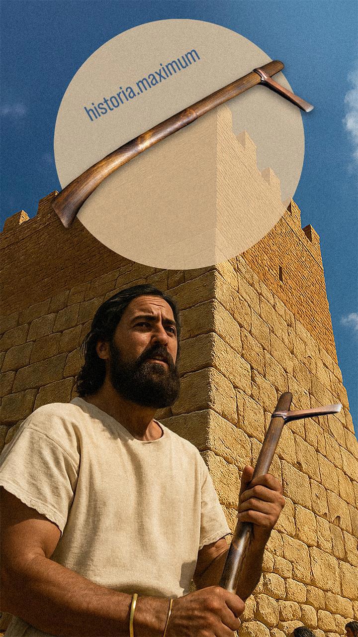 Используя внешность одного из современных жителей Ливана, я создал эту иллюстрацию. Согласно генетическим исследованиям, именно ливанцы являются генетическими наследниками древних ханаанеев. На заднем плане изображена башня города Иерихон периода среднего бронзового века.