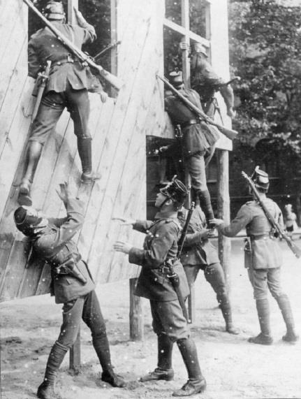 Сотрудники ОрПо (Полиции Порядка) отрабатывают проникновение в здание через окна.