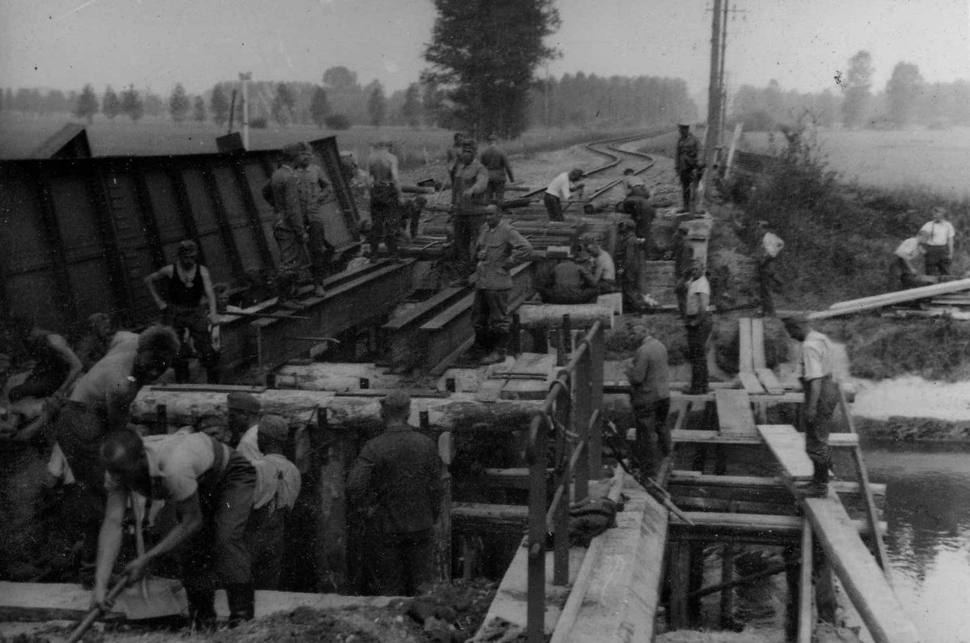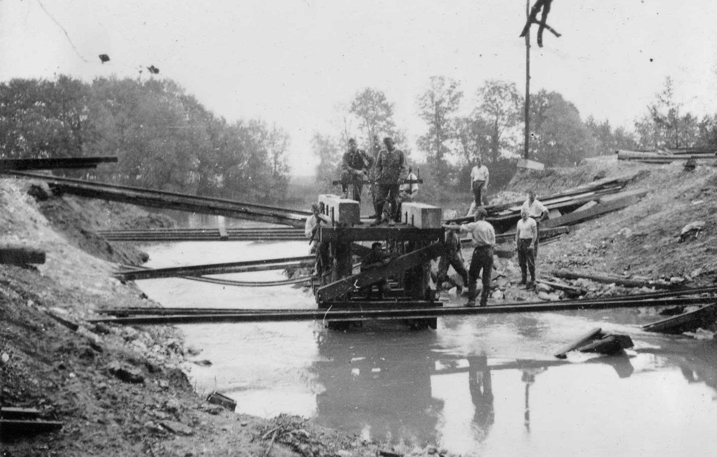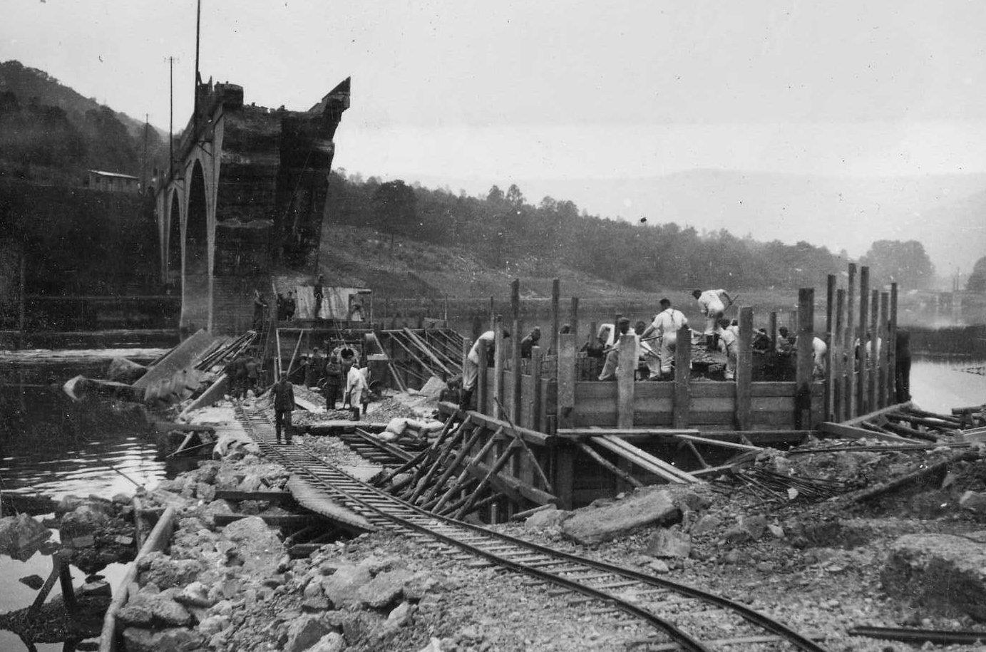 Сапёры монтируют арматуру при восстановлении железобетонного моста