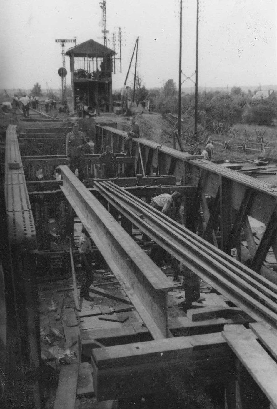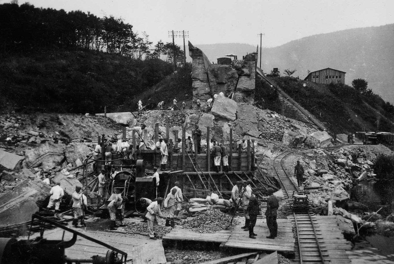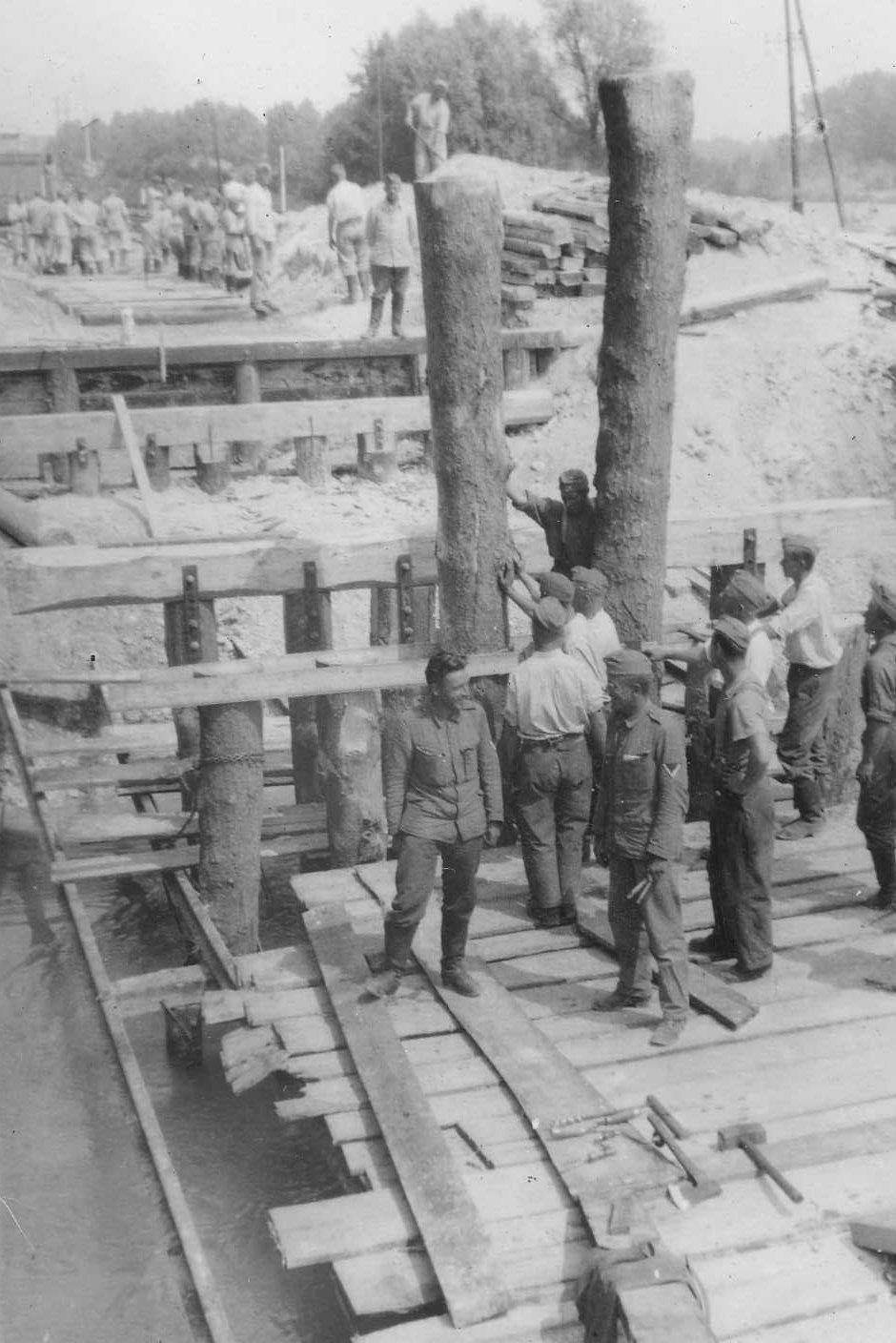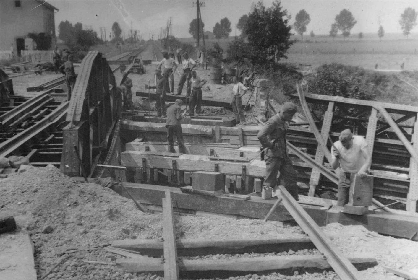 Сапёры монтируют арматуру при восстановлении железобетонного моста