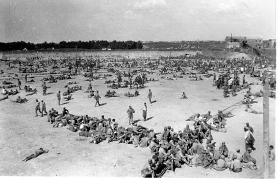 На этом фото, сделанном фельджандармом – печально знаменитая «Уманская яма», огромный лагерь для военнопленных, оборудованный в карьере.