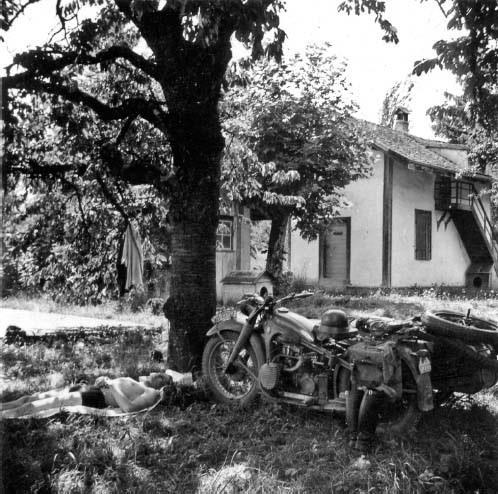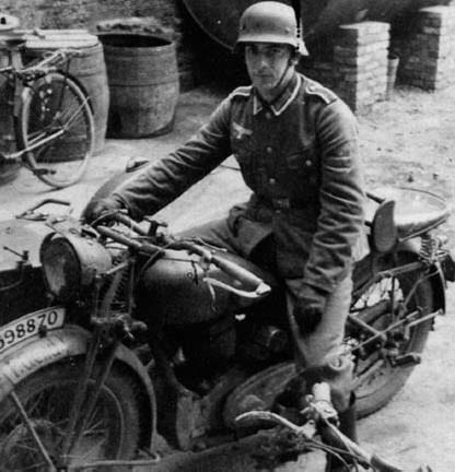 Унтер-офицер полевой жандармерии. Обратите внимание на надпись ‘’ на переднем крыле мотоцикла NSU, которые встречались значительно реже, чем BMW или Zundapp.