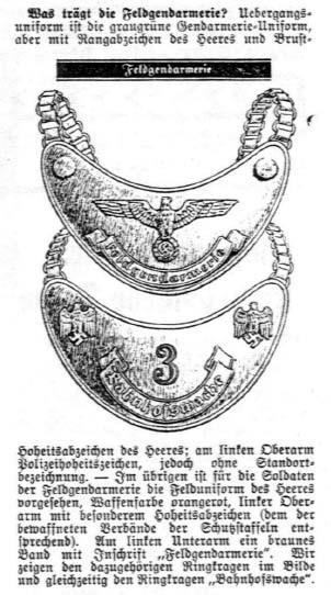 Страница из справочника ‘Uniformen Markt’ с описание горжета полевой жандармерии.