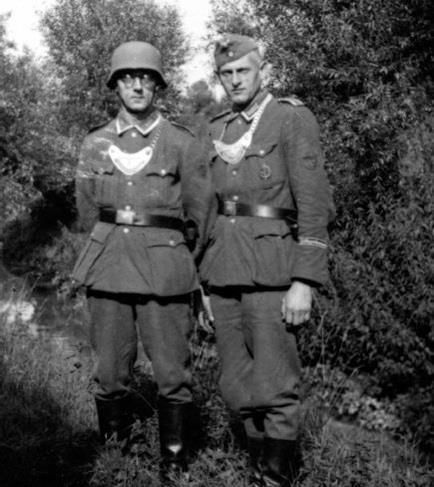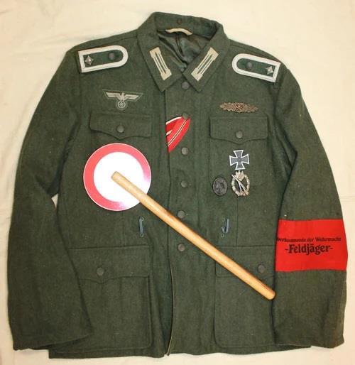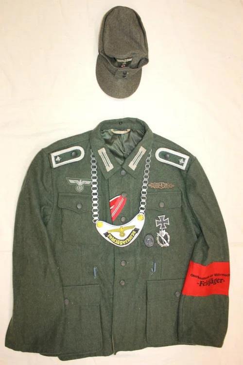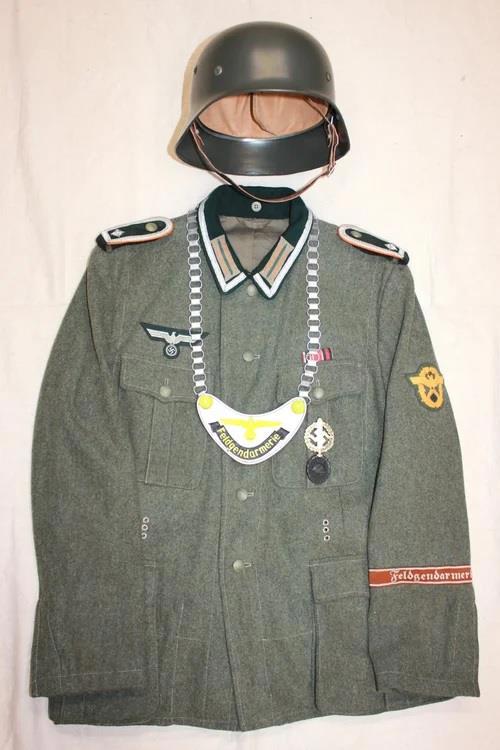 Ниже - форма Feldjägerkorps - специального формирования, появившегося в 1943 году. Если до этого с дезертирами боролись сотрудники полевой жандармерии и ГФП, то в 1943 пришлось создать специальную службу. Требования к кандидатам были строгие - не меньше 3 лет на фронте и быть награждённым , как минимум Железным крестом II класса (Eiserne Kreuz II. Klasse)