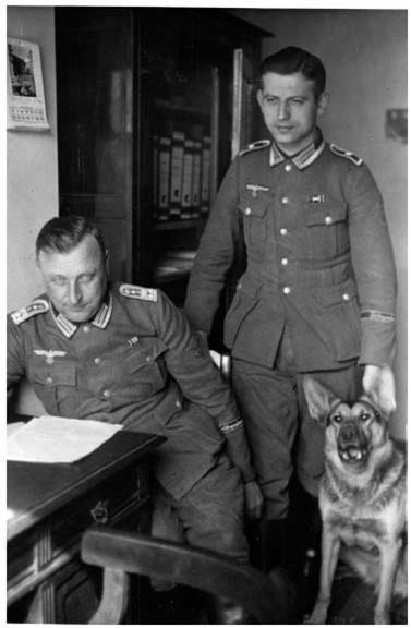 Фельфебель (Feldwebel) и хауптфельдфебель (Hauptfeldwebel) со своей немецкой овчаркой