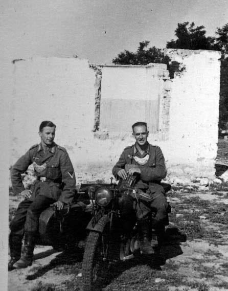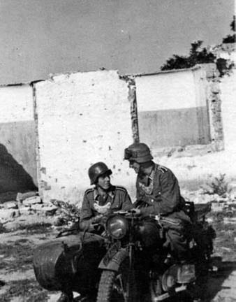 Два военнослужащих из Feldgendarmerie-Trupp 468 на своём мотоцикле с коляской.