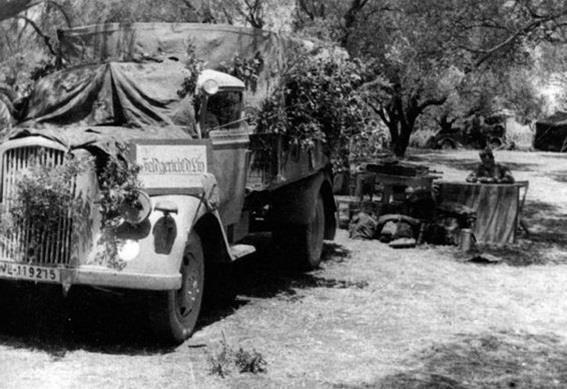 Обратите внимание на знак этого грузовика Opel Blitz. ‘Feldgericht der Lw’ (Полевой военнй трибунал Люфтваффеl). (Herbert Kail)