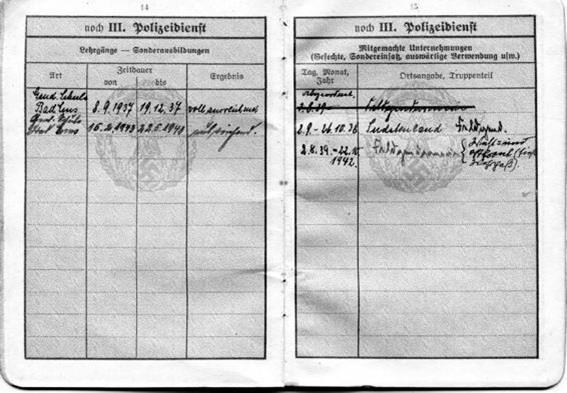 Отметка о службе в Feldgendarmerie также ставилась в полицейское служебное удостоверение (Polizei Dienstpass).