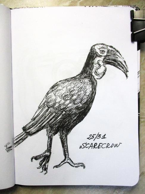 Какой-то шум привлек внимание девушки, осмотревшись по сторонам она заметила большой и темный силуэт какой-то птицы чуть вдалеке от того места где она находилась. С осторожностью подобравшись к месту, откуда доносились звуки, она увидела огромную черную птицу, чем-то напоминавшую ворону, но раз в 7-8 больше по объёму. Девушке почему-то не хотелось связываться с этой птицей, выглядела она внушительно и пугала своими размерами.