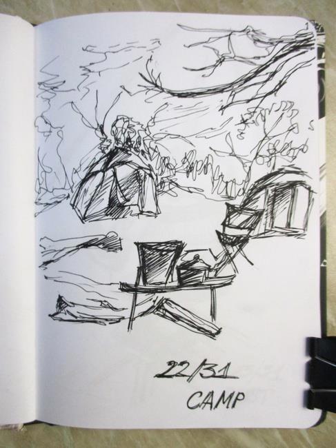 На чайнике, оставленному висеть над костром была заметна небольшая ржавчина. Что в общем-то не было удивительно, т. к. все предметы были явно не новыми, что говорило об опытности участвующих в походе.