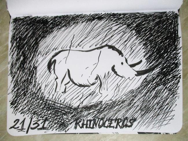 Освещая себе дорогу и стены пещеры, девушка увидела наскальные рисунки животных, в т. ч. носорога. Она остановилась разглядеть это древнее искусство, животные были нарисованы скорее символически, чем натурально, но это не мешало считывать образ.
