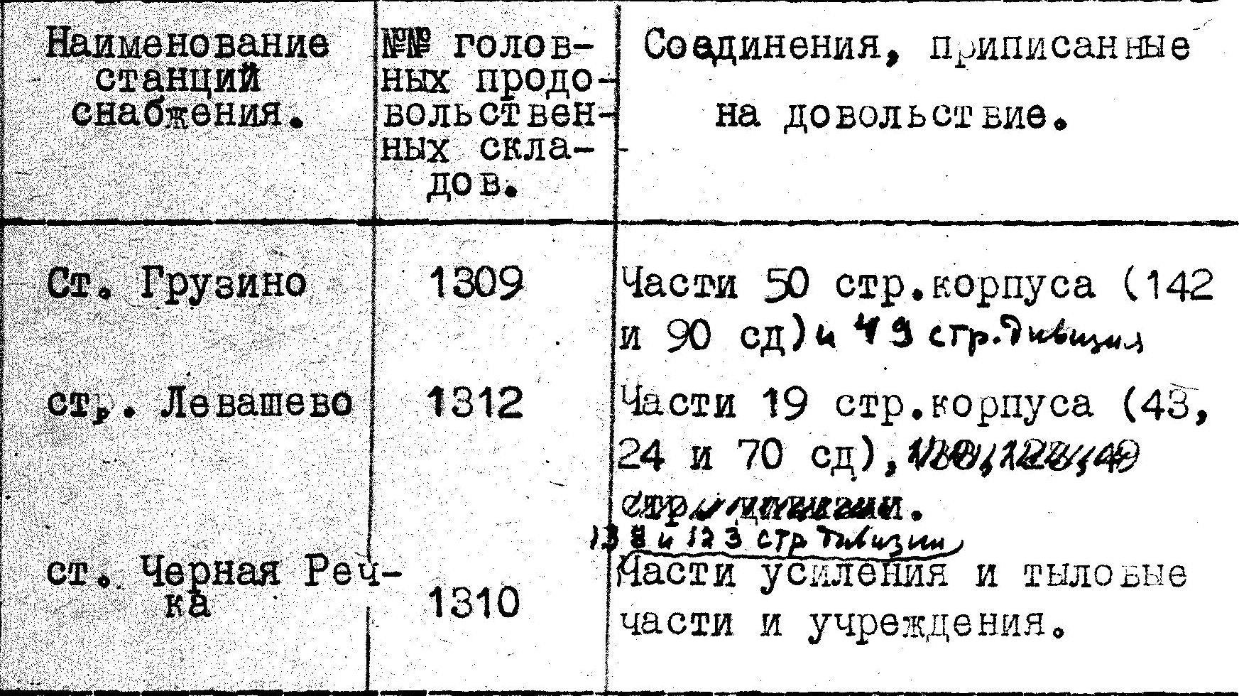 Эти соединения и прочие части и учреждения армии были приписаны к следующим головным продовольственным складам: