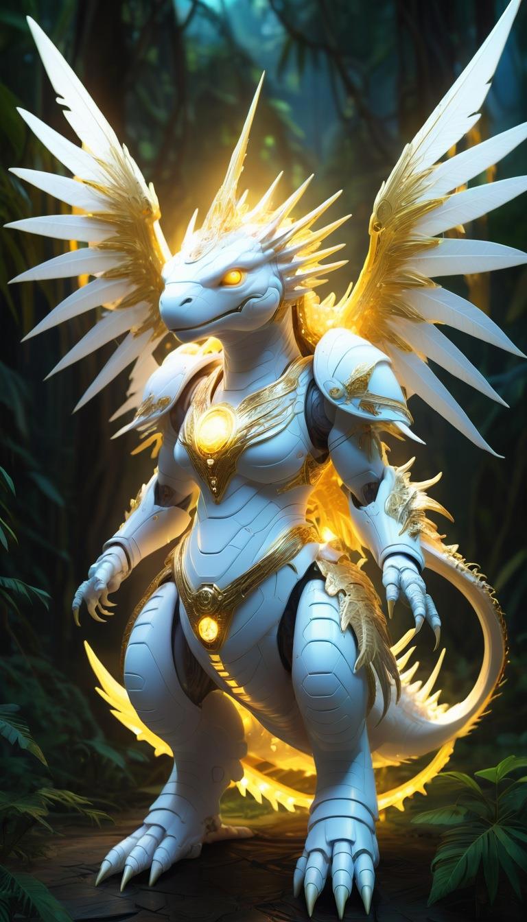 Был здоровенным жёлто-фиолетовым ящером с светящимися голубыми шипами на спине. Глаза у нее были золотые.